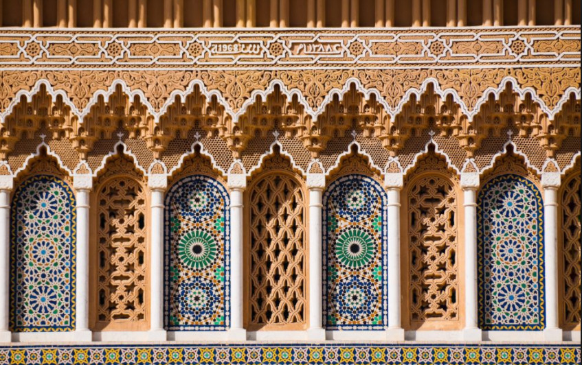 - Intricate zellige (mosaic) tilework and carved plaster.